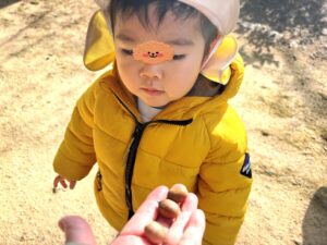 ポッケからどんぐりを取り出して