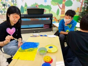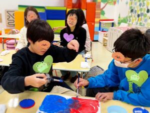 二人で一枚の画用紙に